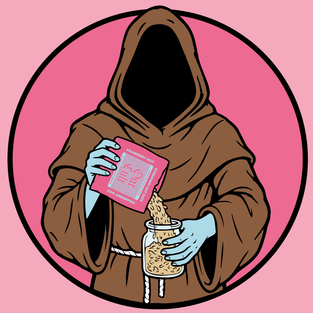 Empty your chosen Oat Cult pack into a jar or bowl. Any vessel will do—no judgment here.